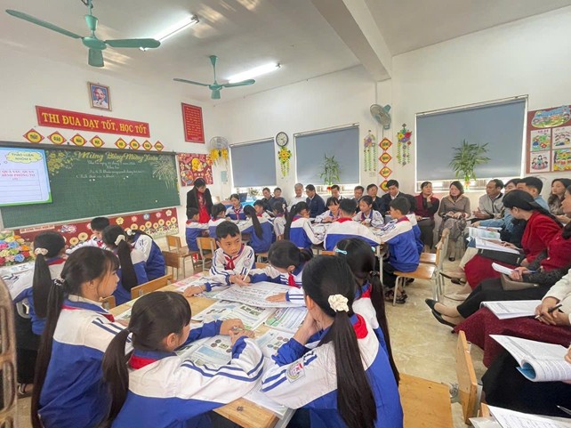 Tham gia chuyên đề các thầy cô giáo đã dự tiết dạy minh họa môn Khoa học của cô giáo Nguyễn Thị Thu Thảo và các bạn học sinh lớp 5A bài số 18: Vi khuẩn xung quanh chúng ta. Tiết học được mở đầu bằng giai điệu sôi động của bài hát: Vũ điệu rửa tay. Trong suốt tiết học, cô giáo đã khéo léo dẫn dắt học sinh khám phá những kiến thức về vi khuẩn và những kĩ năng sống thực tế có liên quan tới nội dung đã học trong bài.