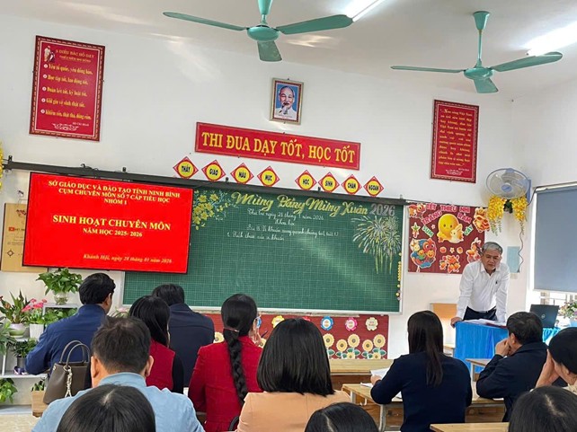 Chiều 28/01/2026, tại Trường Tiểu học Khánh Mậu, đại diện giáo viên tổ 4 + 5 cùng BGH trường Tiểu học Khánh Hồng đã tham gia sinh hoạt chuyên môn nhóm 1 cụm 7 Sở Giáo dục Đào tạo tổ chức.