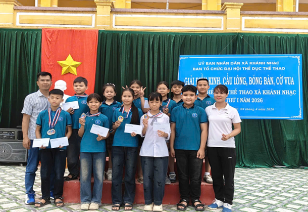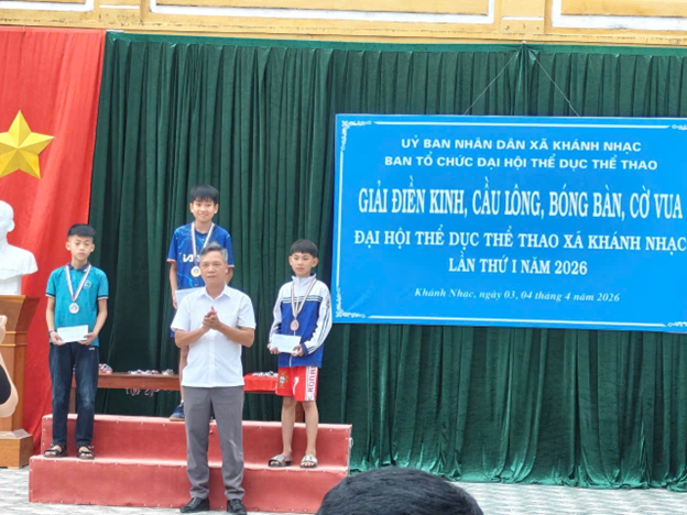 Trong không khí sôi nổi, hào hứng của Đại hội Thể dục Thể thao ngành Giáo dục xã Khánh Nhạc năm 2026, diễn ra vào ngày 03 và 04/4/2026, đội tuyển TDTT Trường TH Khánh Hồng đã thi đấu nhiệt tình hết mình, giành được nhiều thành tích cao ở các nội dung điền kinh, bóng bàn, Cờ vua, khẳng định chất lượng phong trào rèn luyện thể dục, thể thao của nhà trường.